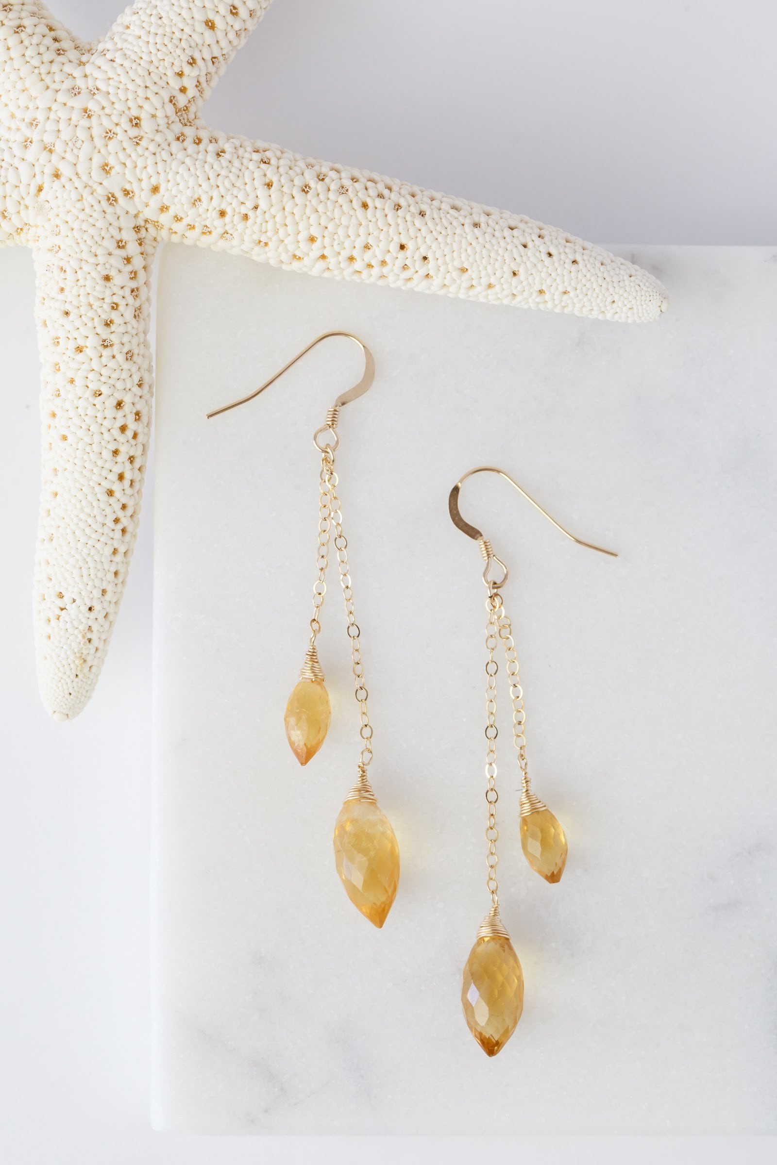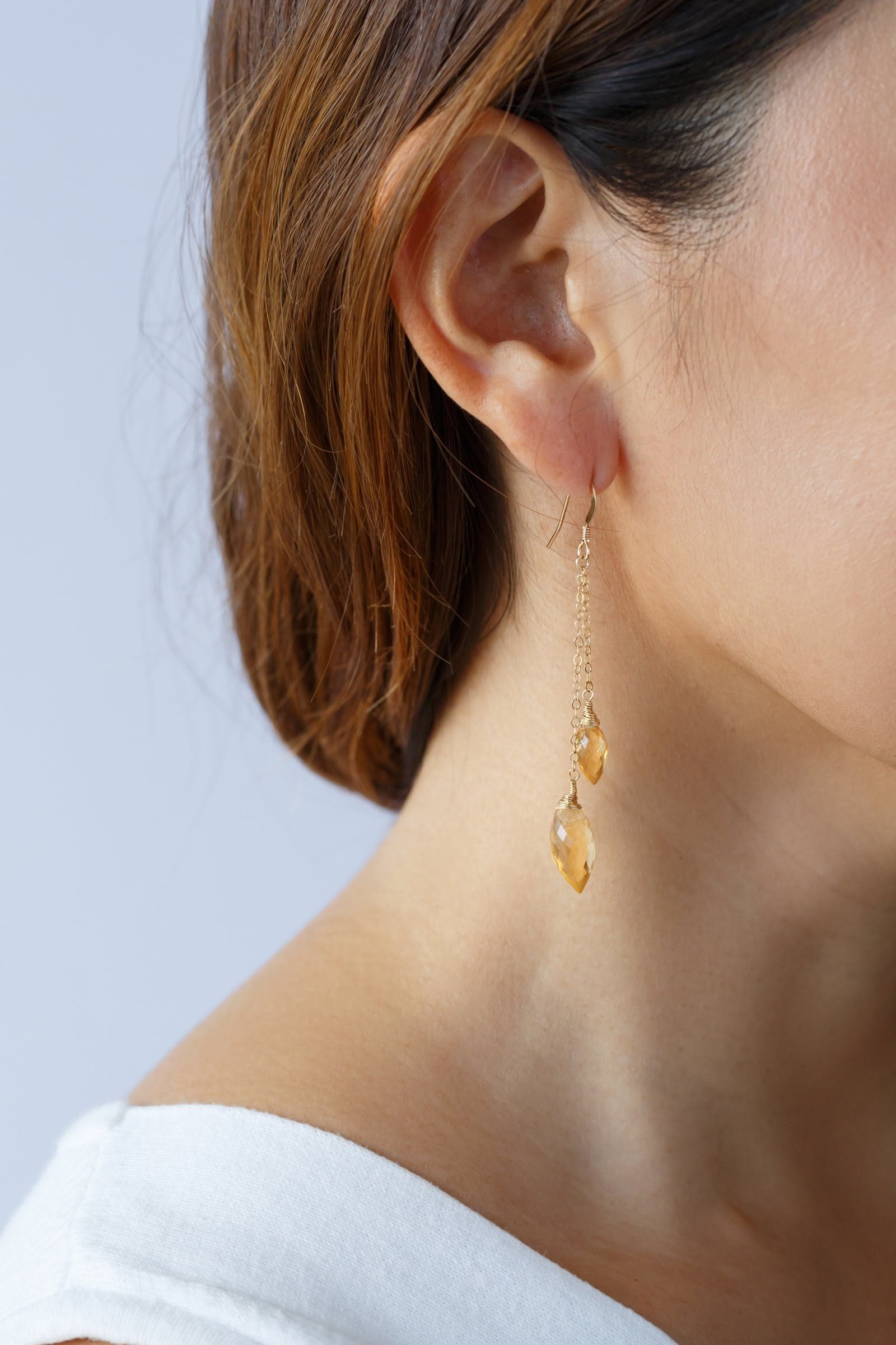 マーキスカットのシトリンのピアスです。ゴージャスなデザインですが、淡い色なので目立ちすぎず程よい存在感です。