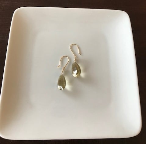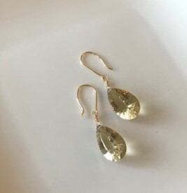 一粒でとてもゴージャスなピアスですが、色が透明度の高いイエローのため目立ちすぎず何にでも合うデザインです。