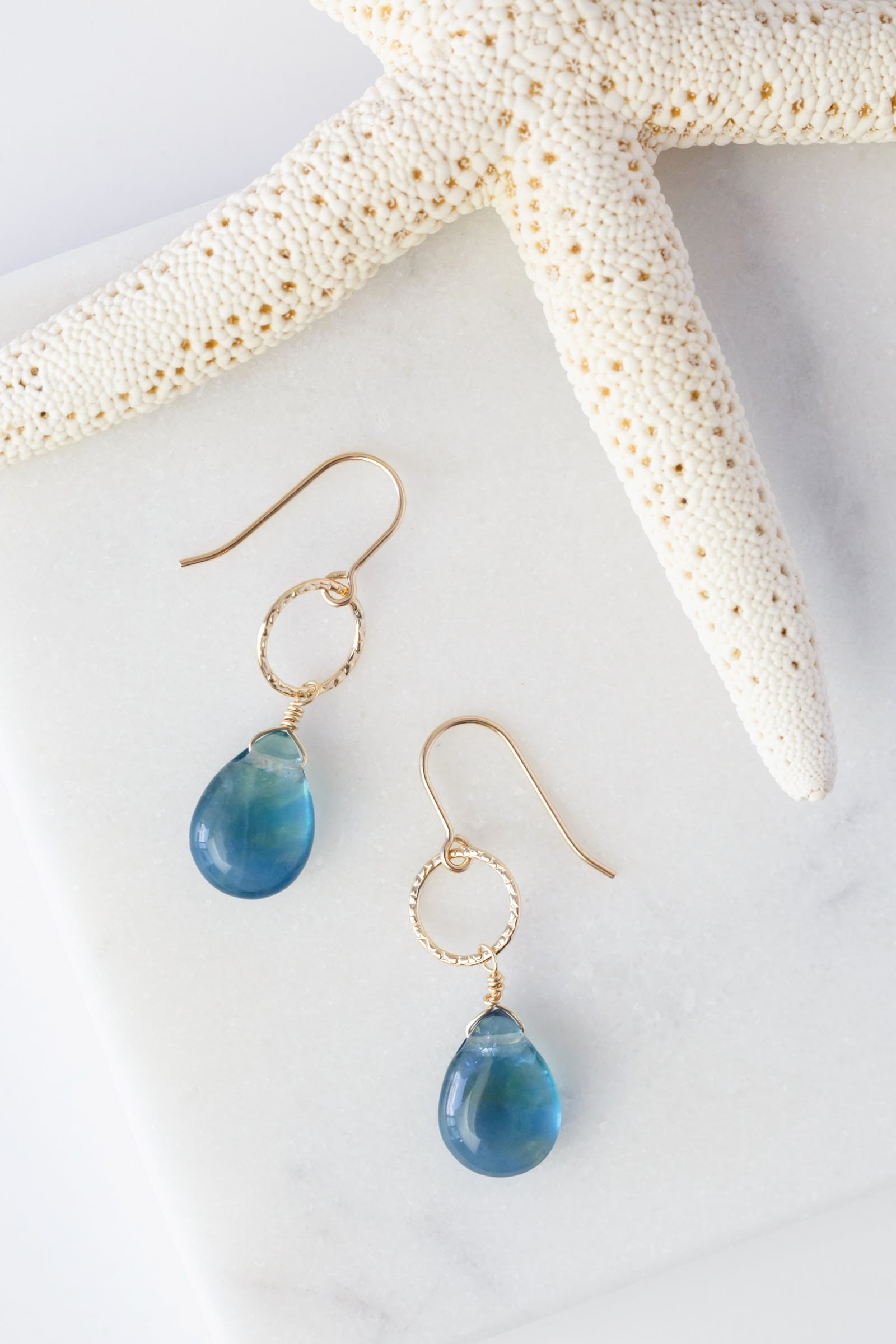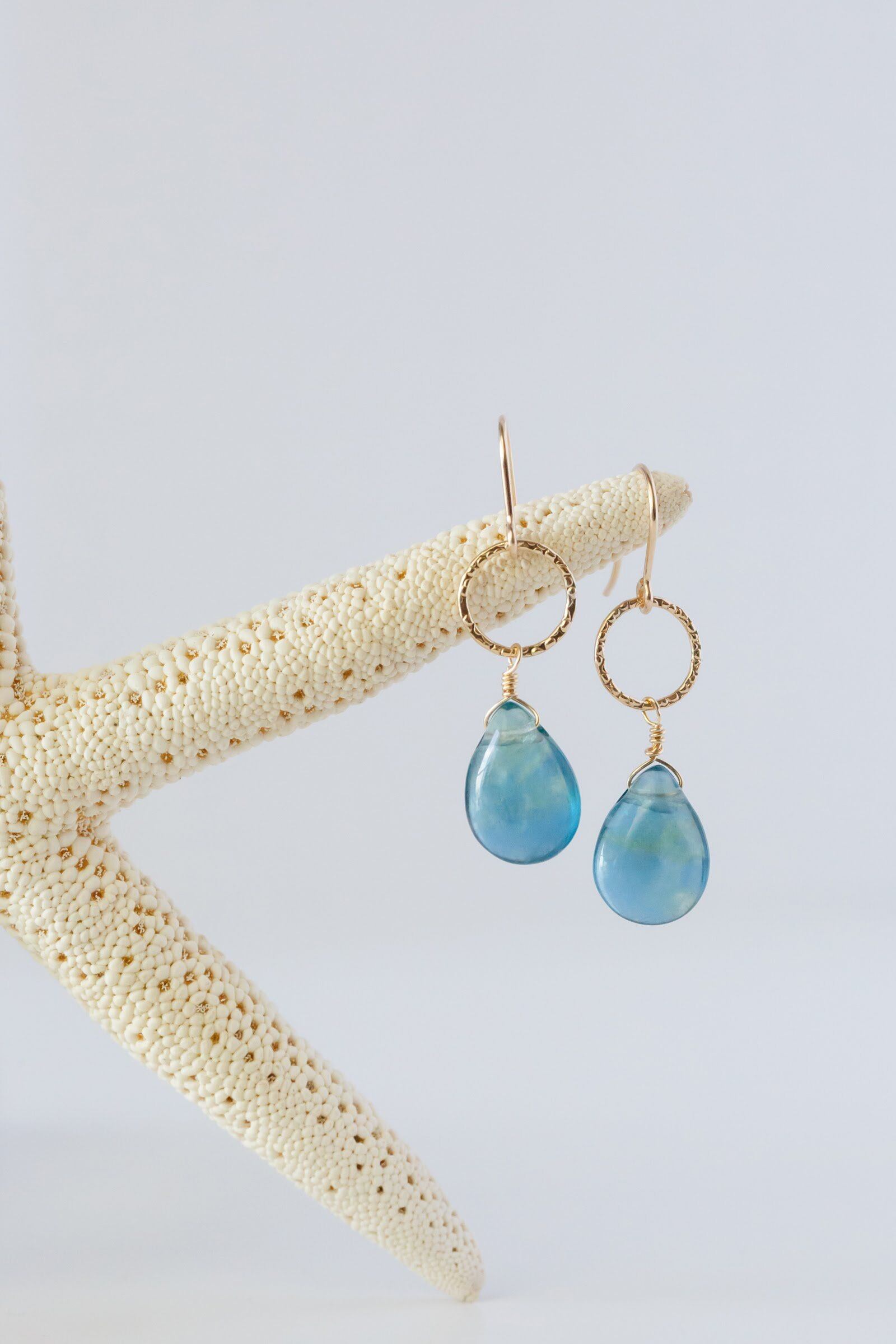 ハワイの海のような光によってグリーンにもブルーにもみえる美しいフローライトのピアスです。